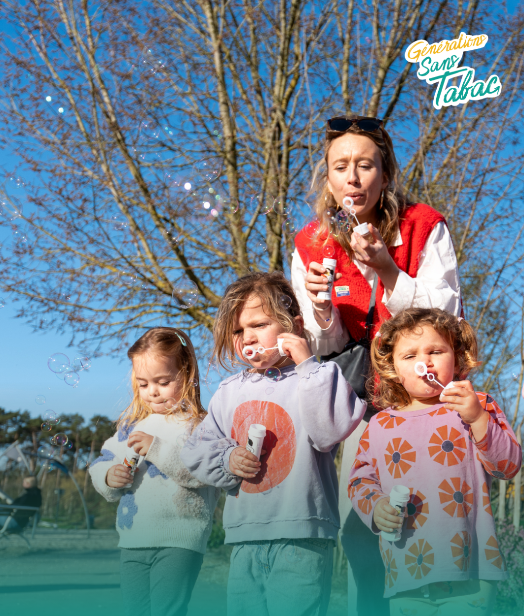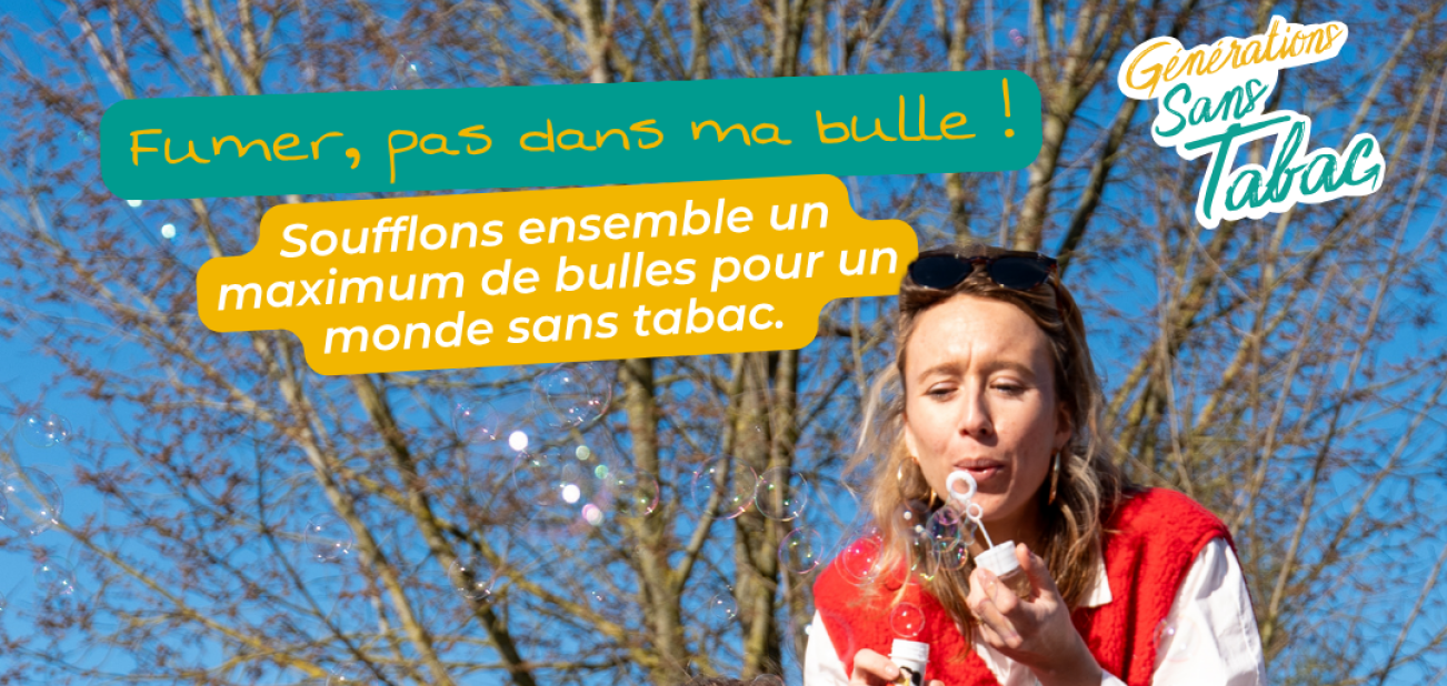 Souffler des bulles plutôt que de la fumée est une façon ludique et positive de mettre en avant les environnements sans tabac. Ça correspond bien à l’univers des enfants, et tout le monde peut participer. Le 31 mai, soufflez des bulles et faites de votre engagement en faveur d’une génération sans tabac un moment festif.