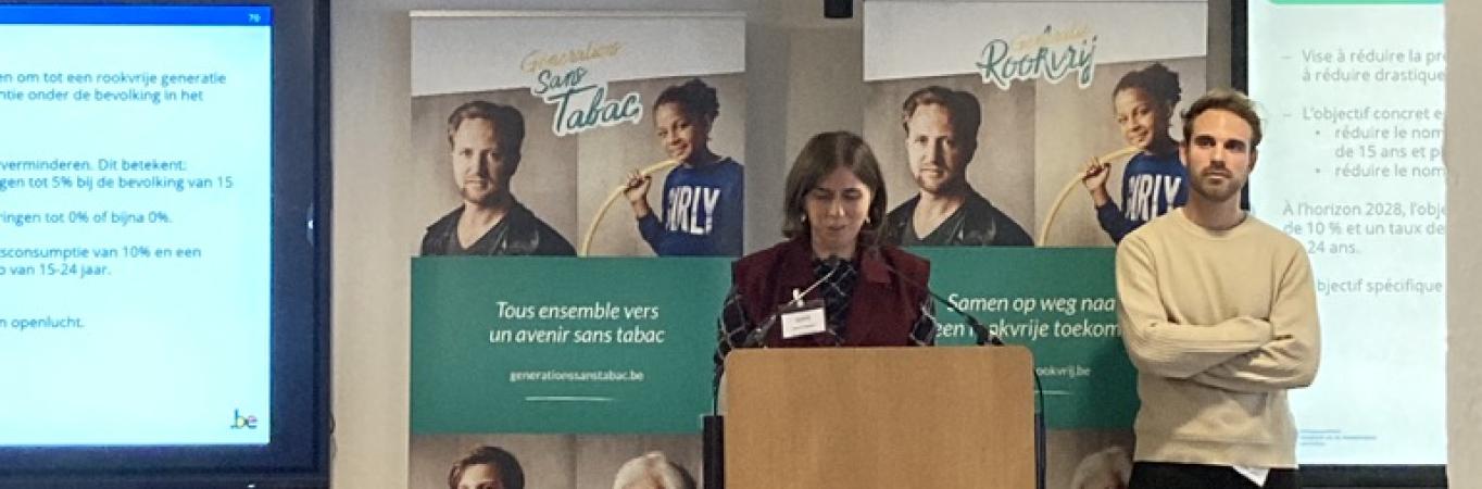 Le 31 décembre 2024, les « Modifications législatives concernant l’interdiction de fumer dans les lieux accessibles au public » sont entrées en vigueur dans notre pays. Toute une série de lieux en plein air fréquentés par des enfants sont alors devenus légalement sans tabac : un pas de géant vers notre objectif d’une génération sans tabac ! Lors de notre Journée des partenaires fin 2025, Annick Galante et Andreas Geeraerts du SPF Santé publique ont abordé le déroulement de la mise en place de la nouvelle règlementation, la meilleure manière de se conformer aux exigences légales, mais aussi les modifications législatives en préparation.