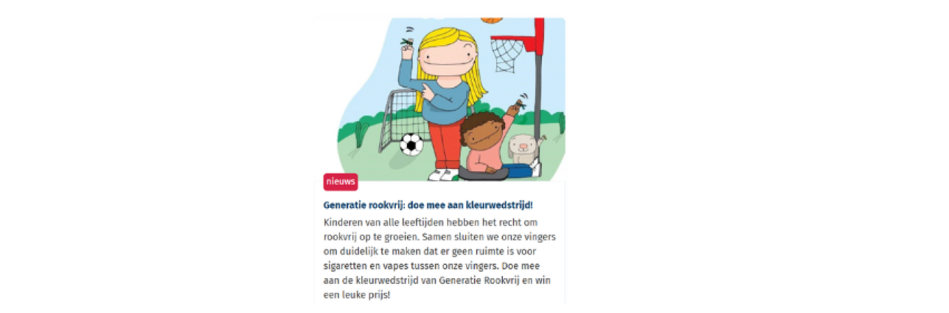 Les enfants de tous âges ont le droit de grandir sans fumée et de jouer dehors dans un air frais et sans tabac. C’est pourquoi nous organisons un concours de coloriage pour et par cette génération sans fumée. Chaque participant a une chance de gagner un chouette goodiebag rempli de jouets pour jouer à l’extérieur. Les dessins peuvent être déposés à différents lieux de collecte. Trois gagnants seront tirés au sort par point de collecte.